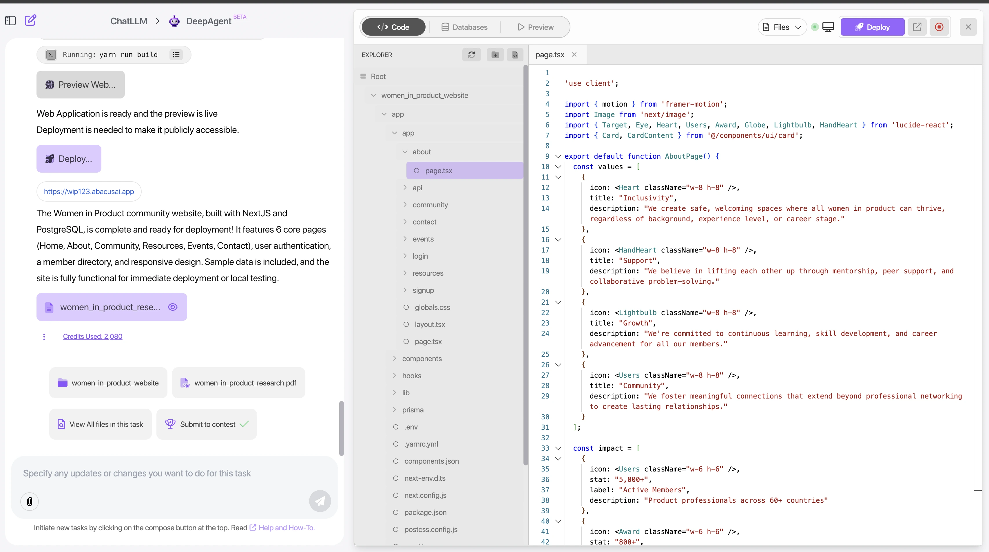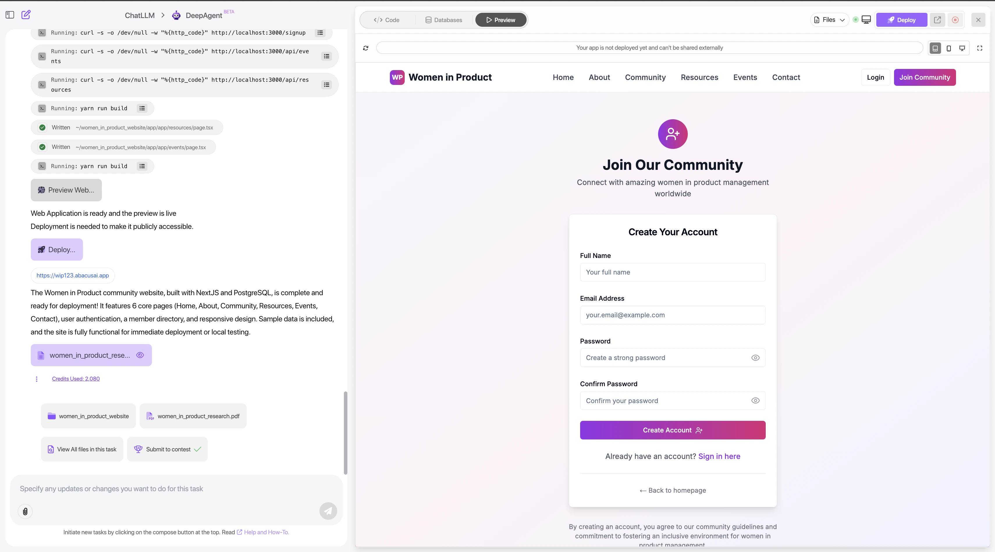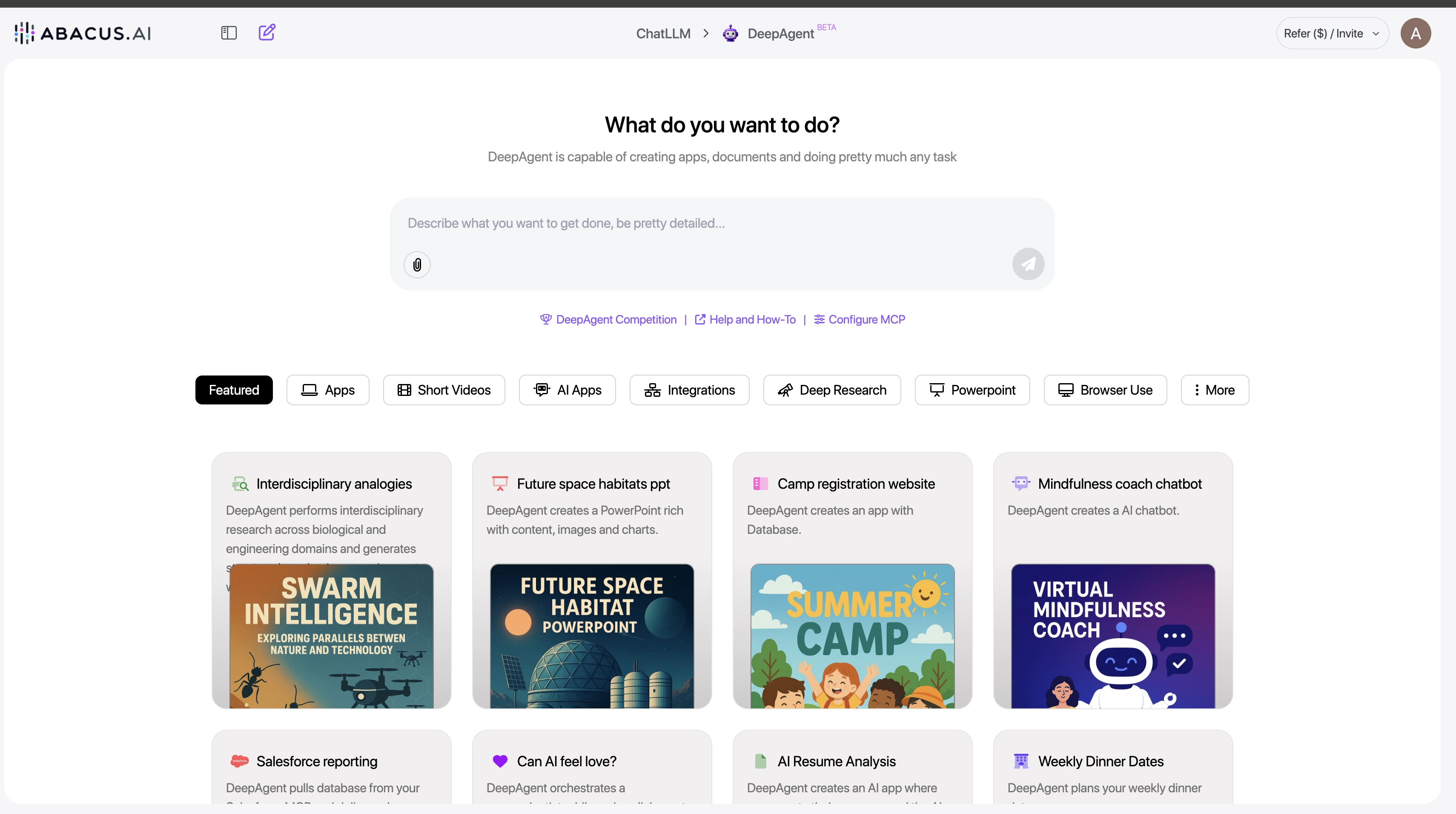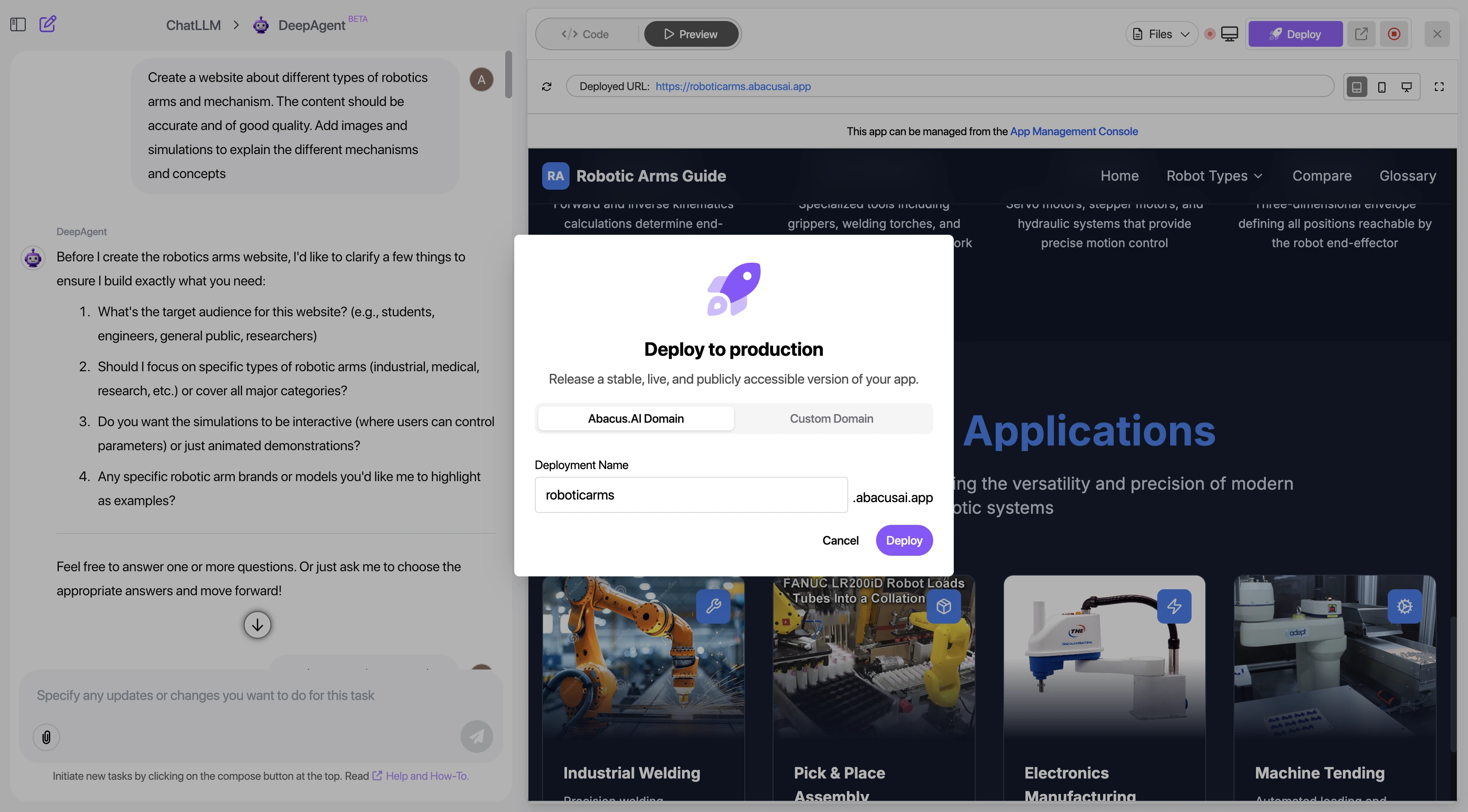 Create AI Apps with AI-powered features and Chatbots in any domain using Abacus AI Deep Agent.